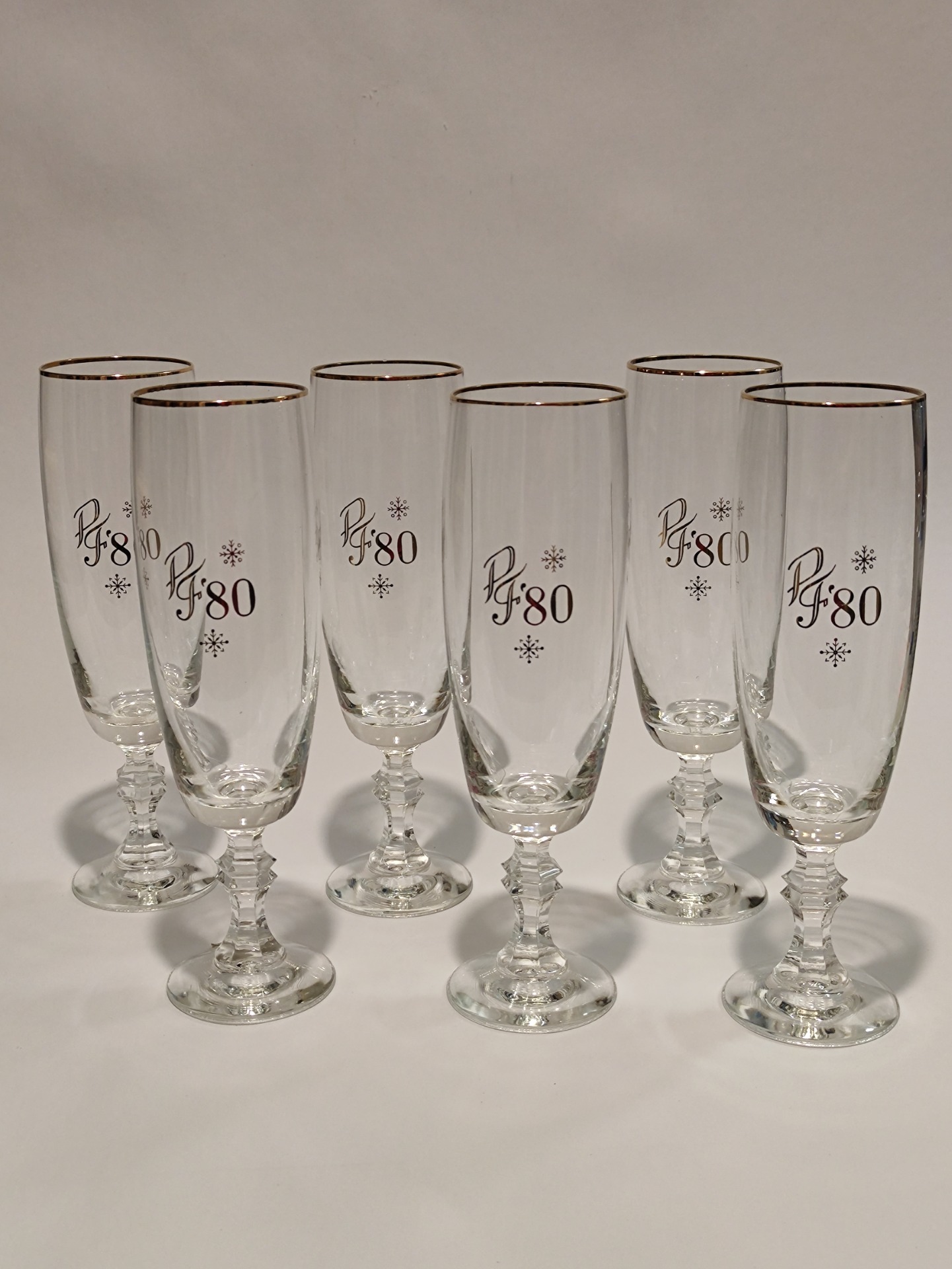 Originální retro sklenice na přípitek s motivem PF 1980 vyrobené ve sklárnách Lednické Rovne v tehdejším Československu. Typický kousek skla z období socialismu, který připomíná atmosféru silvestrovských oslav a novoročních přípitků své doby.