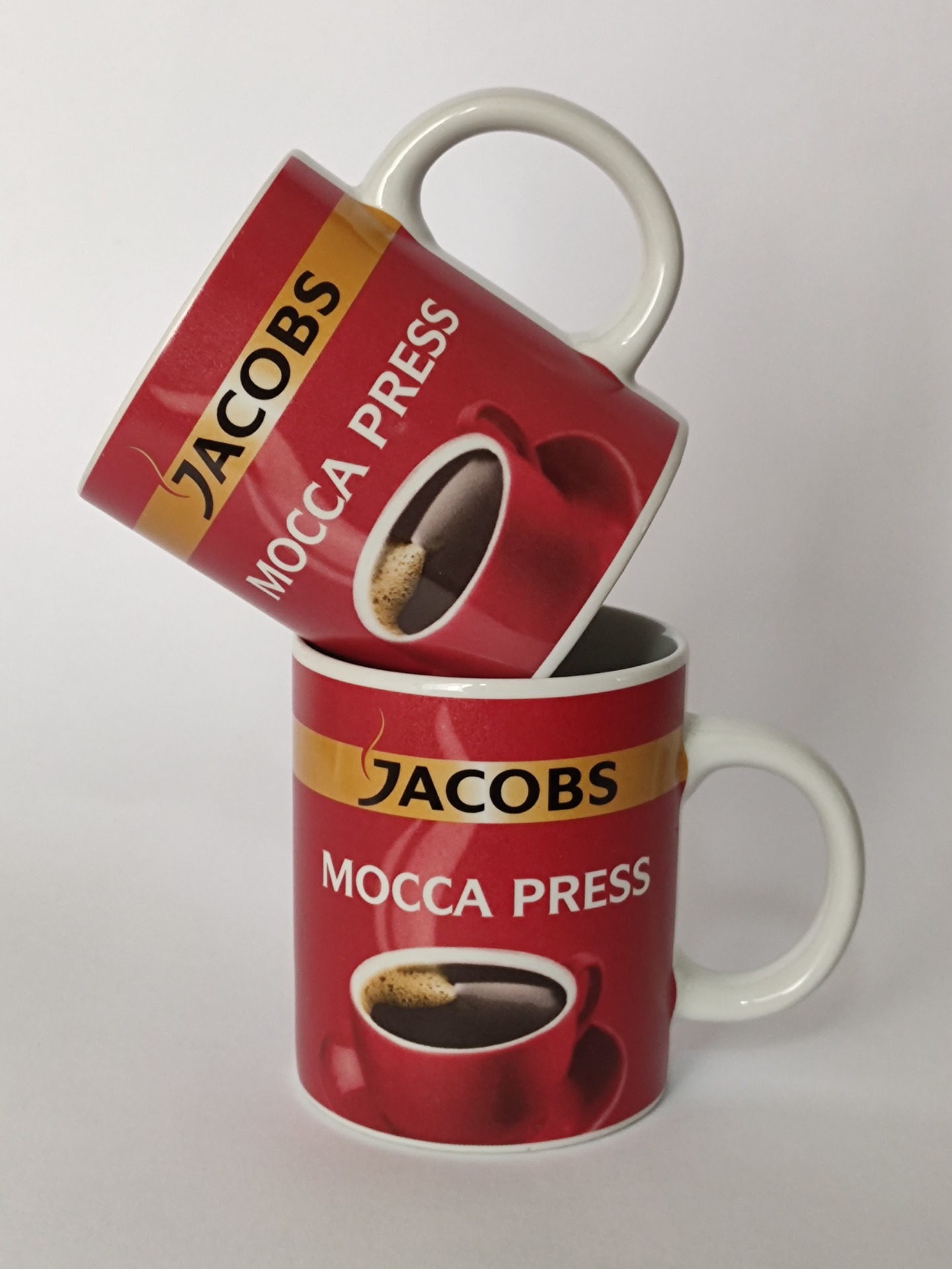 Reklamní hrnek na větší kávu. K dispozici dva kusy, oba v pořádku, v pěkném zachovalém stavu.