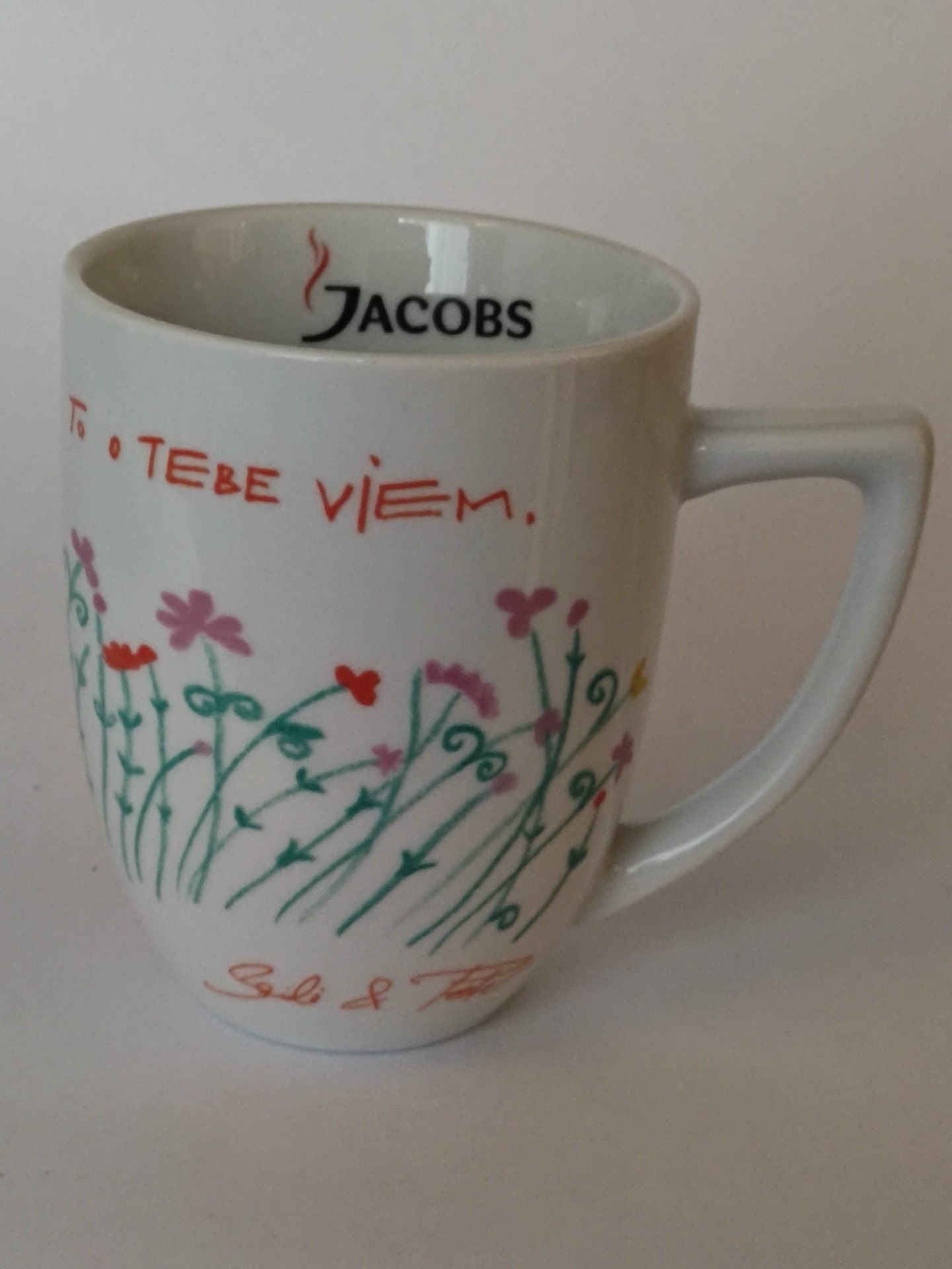 Hrnek Jacobs s nápisem ve slovenštině