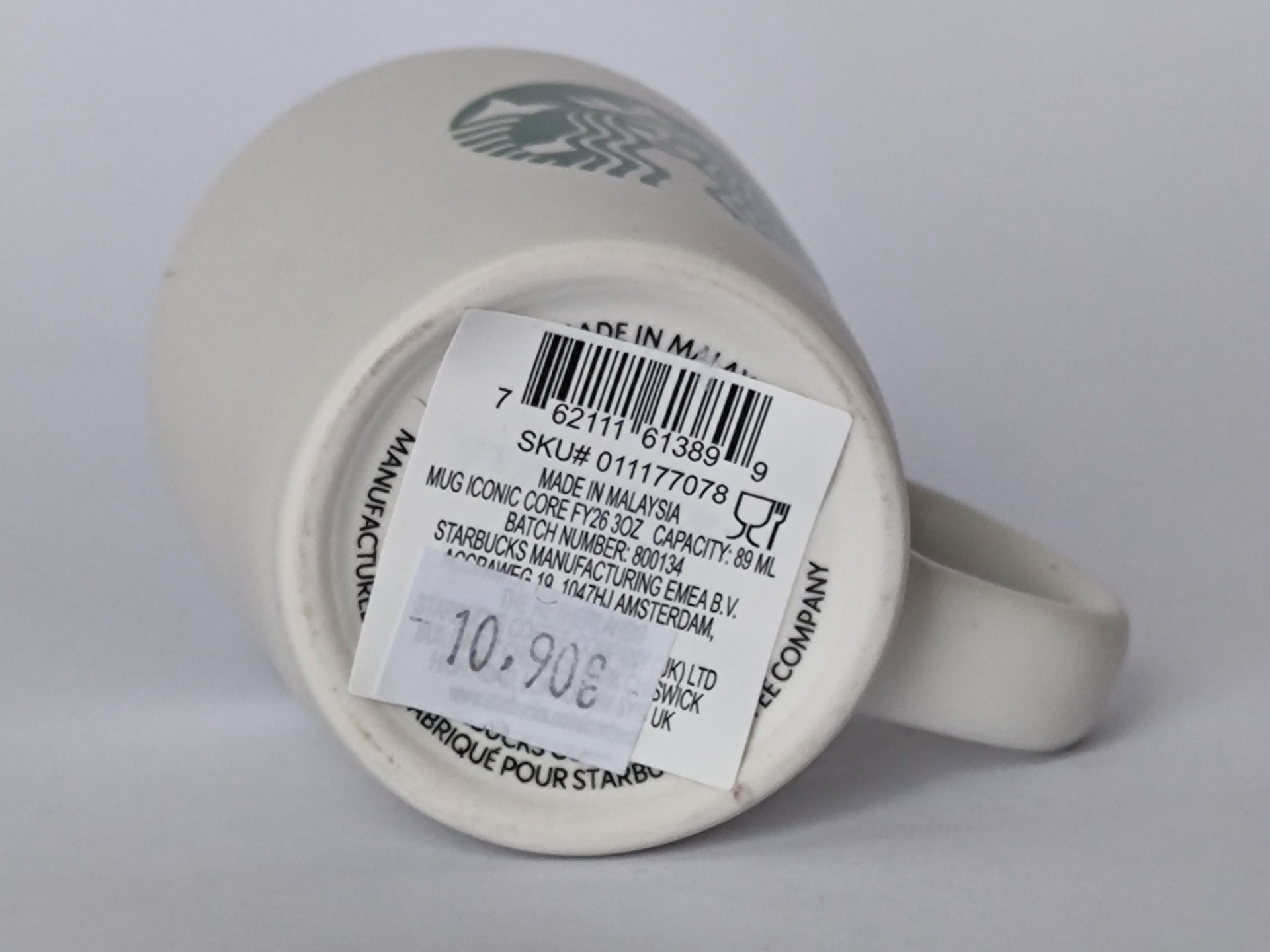 Originální espresso hrnek Starbucks z řady Iconic Core v typickém bílo-zeleném provedení s ikonickým logem sirény.