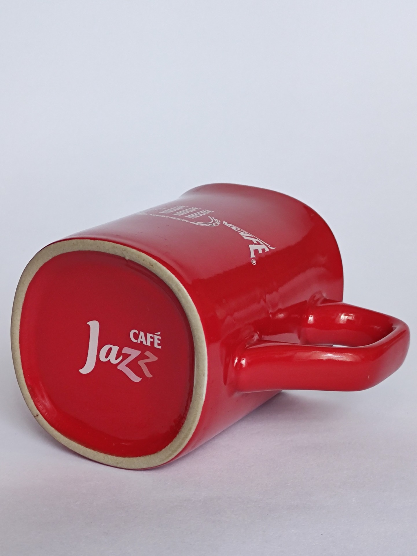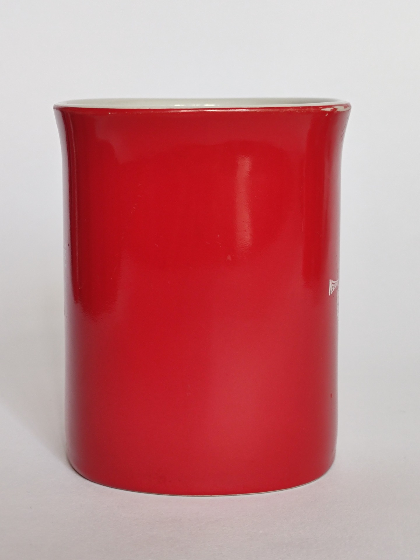 Hrníček v zachovalém stavu, ale nese známky stáří a používání, opotřebovaný horní okraj, jinak žádná zásadní vada.