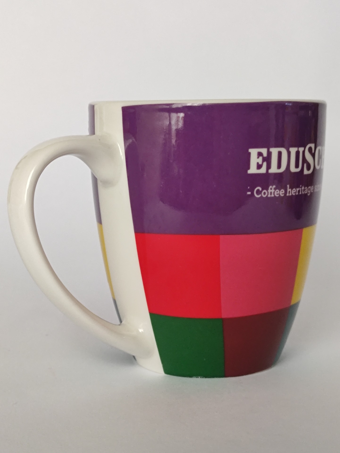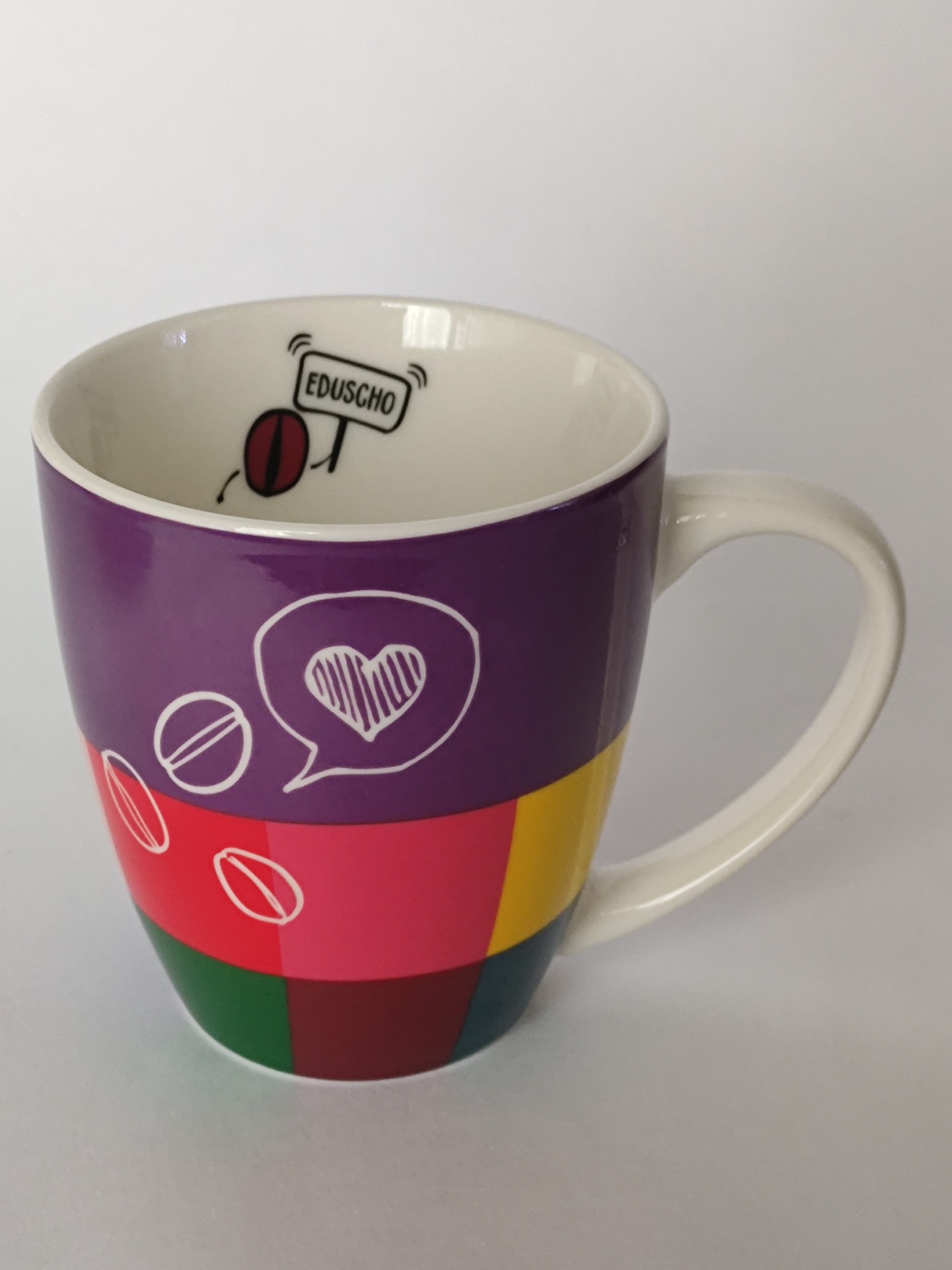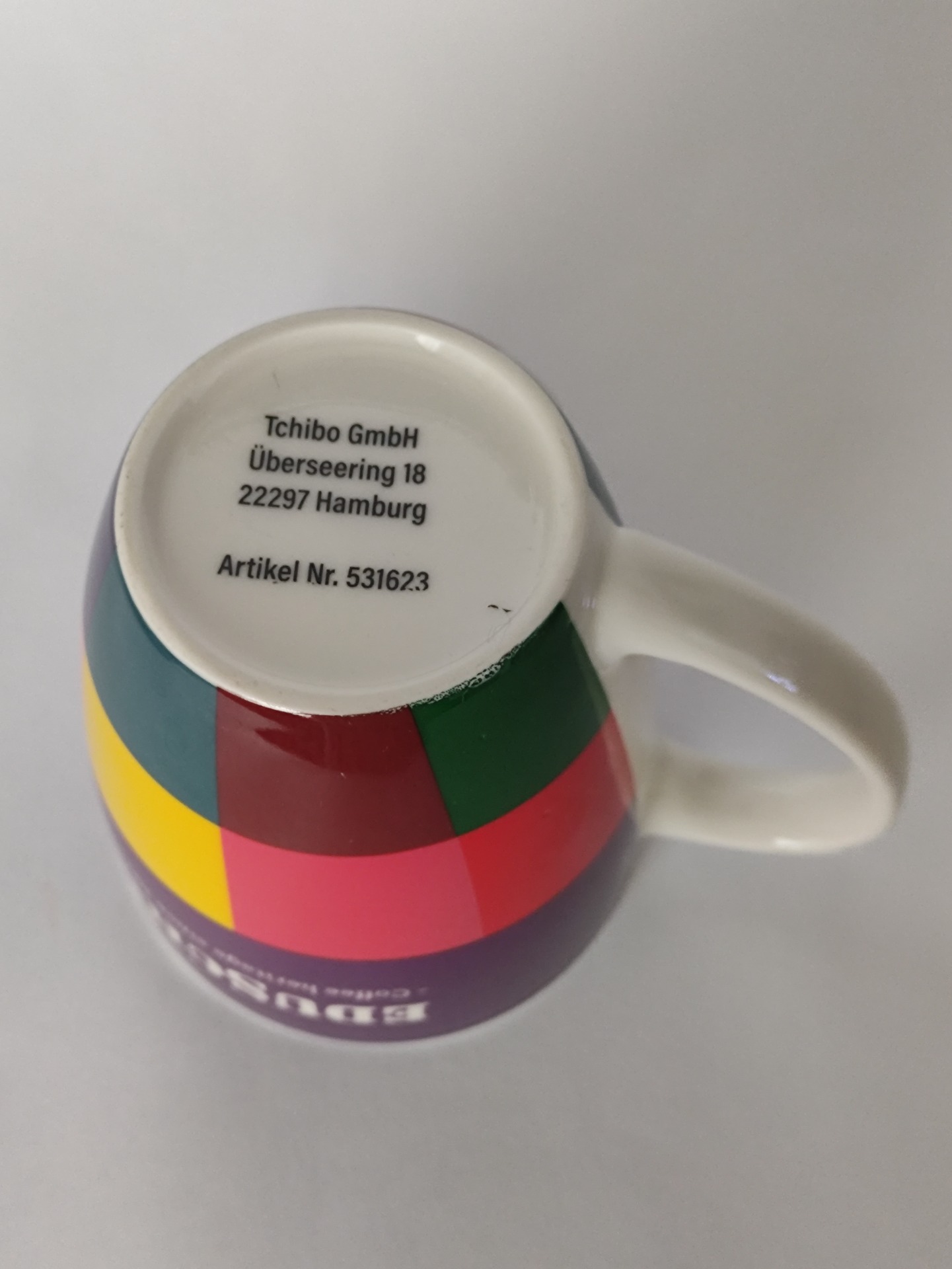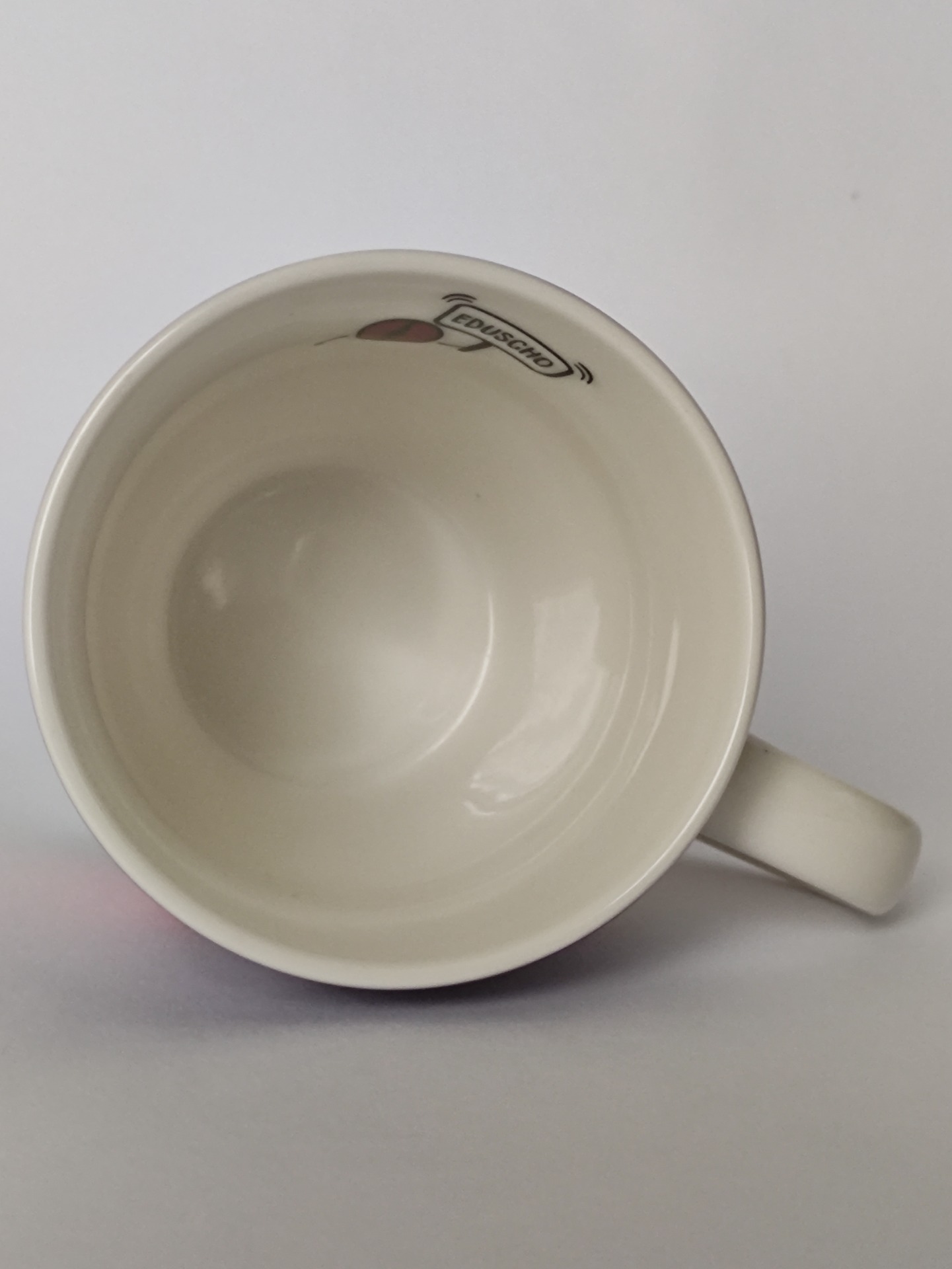Větší hrnek ve veselé barevné kombinaci, pěkný zachovalý stav, jen minimální známky stáří.