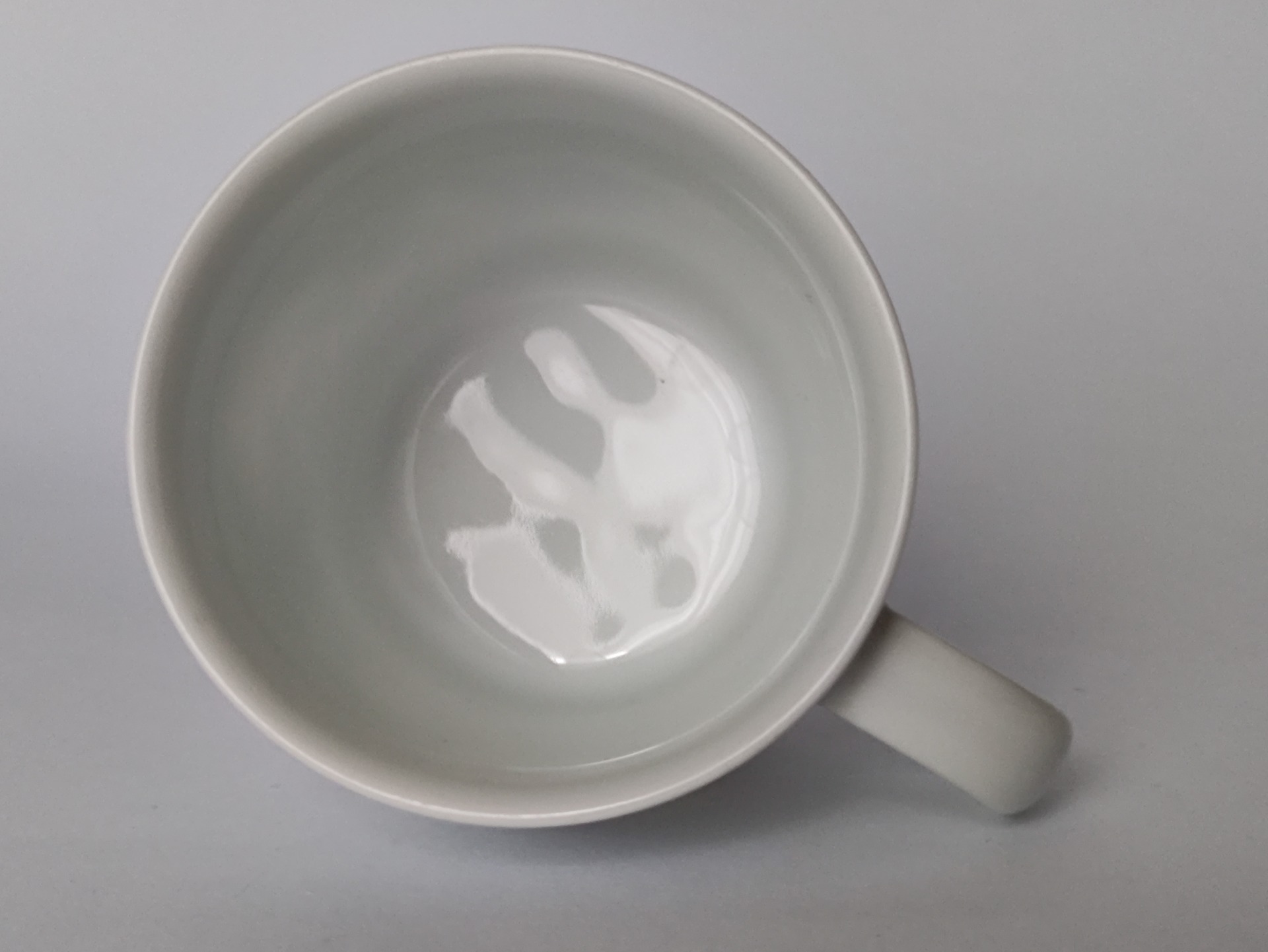 Hrníček je bez podšálku, v pořádku, ale už nese menší známky stáří, viz poslední detailní foto.