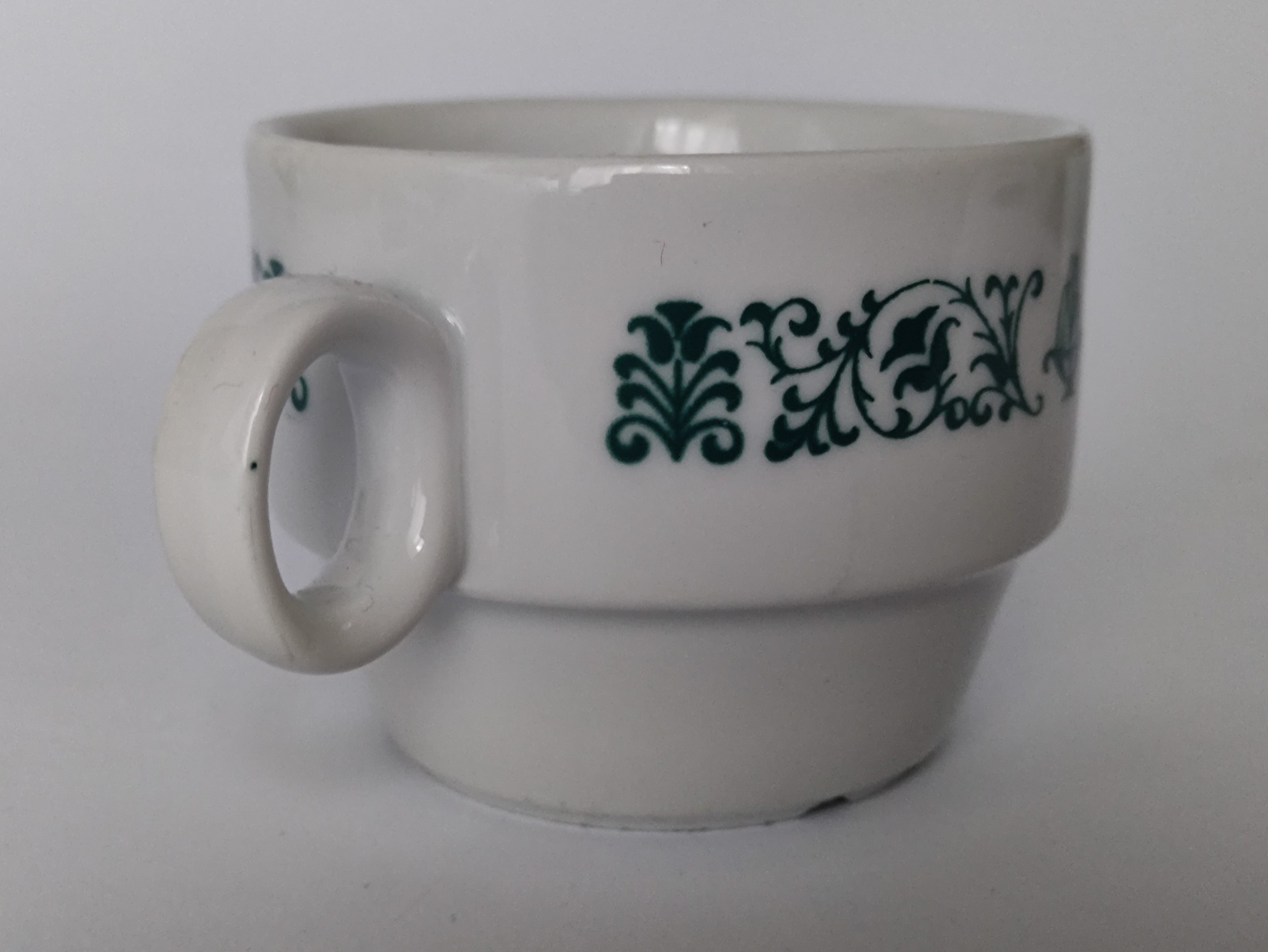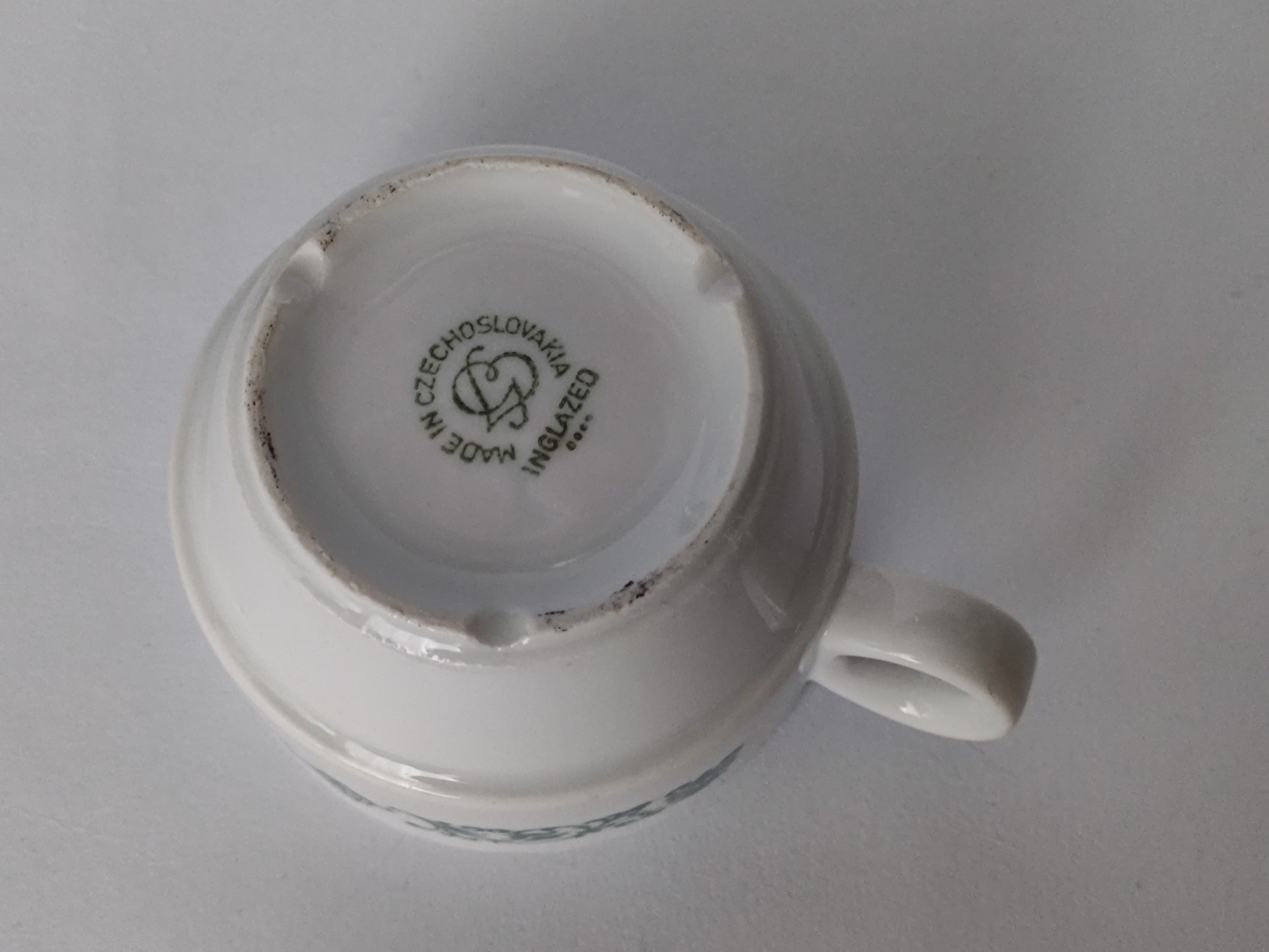 Hrníček je bez podšálku, ale v pořádku, v pěkném zachovalém stavu.