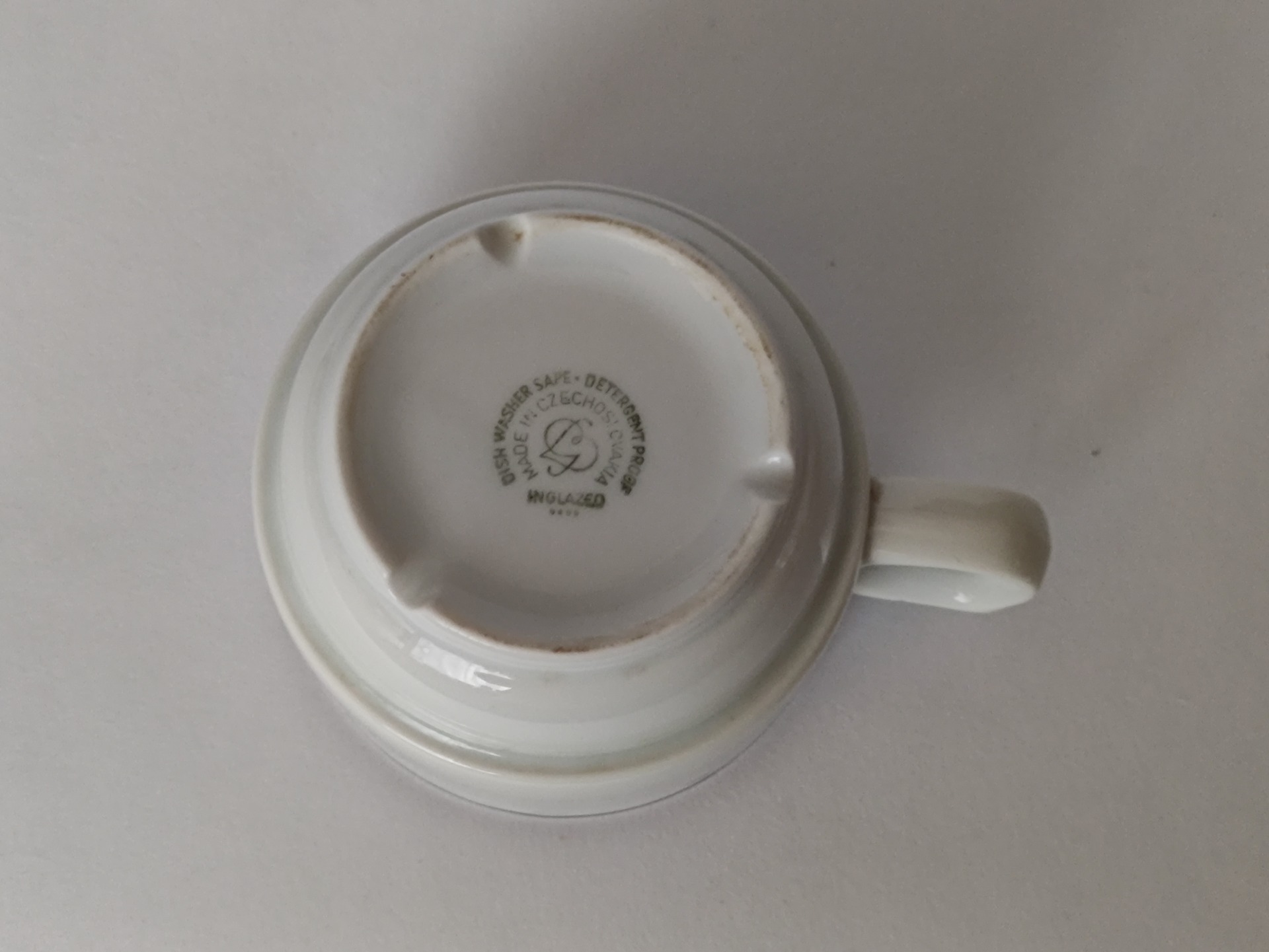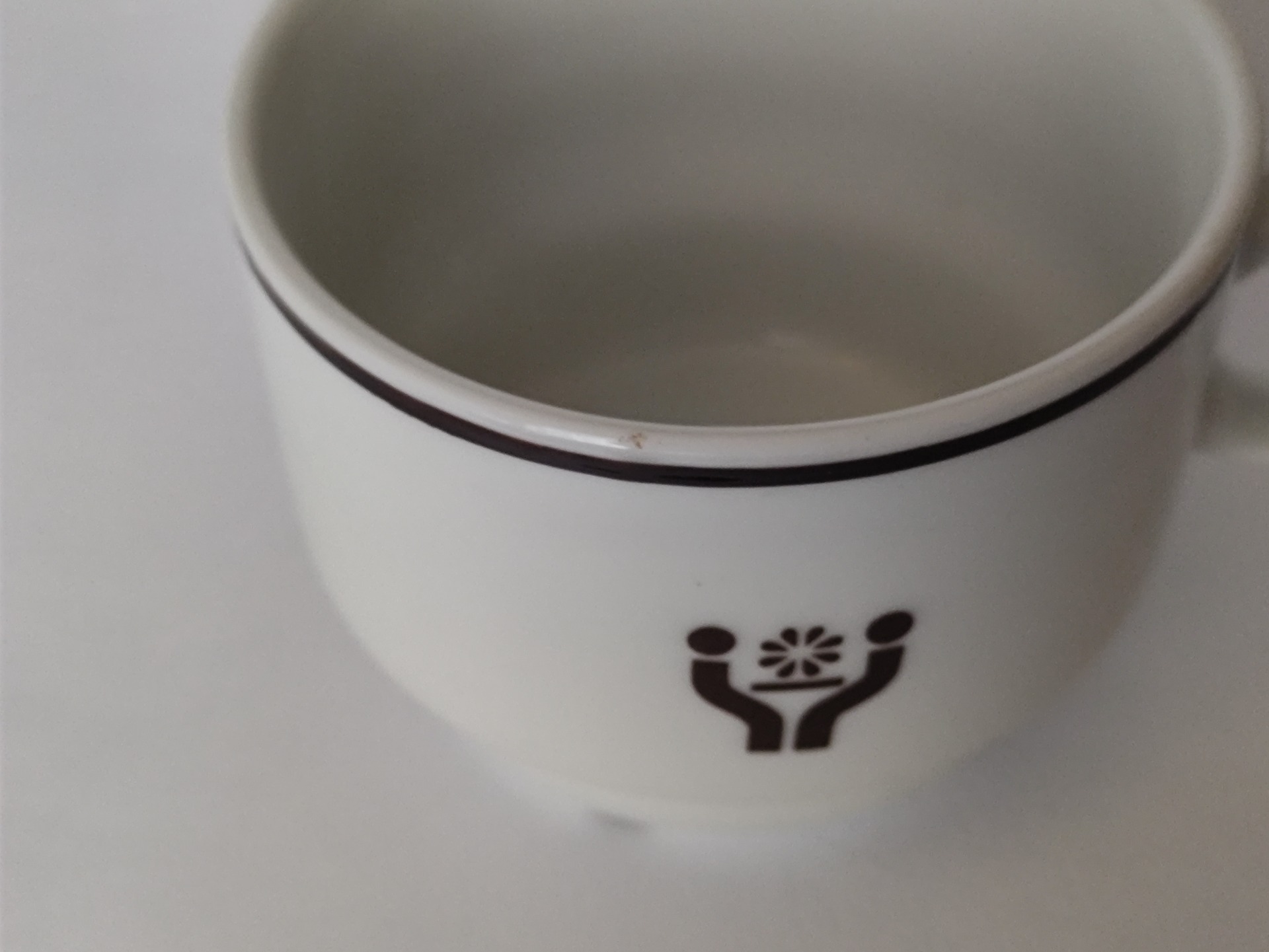 Šálek s tradičním logem ze starých restaurací a jídelen v zachovalém stavu, jedna malá viditelná vada, viz detailní foto. Podšálek chybí.