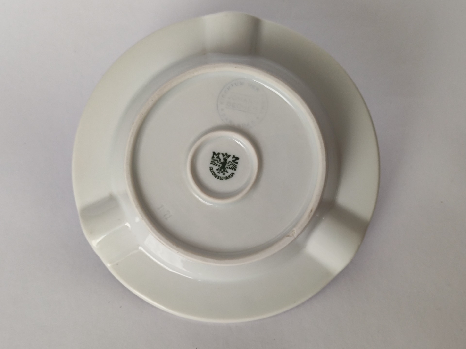 Popelník je v zachovalém stavu, známky stáří jsou adekvátní věku.