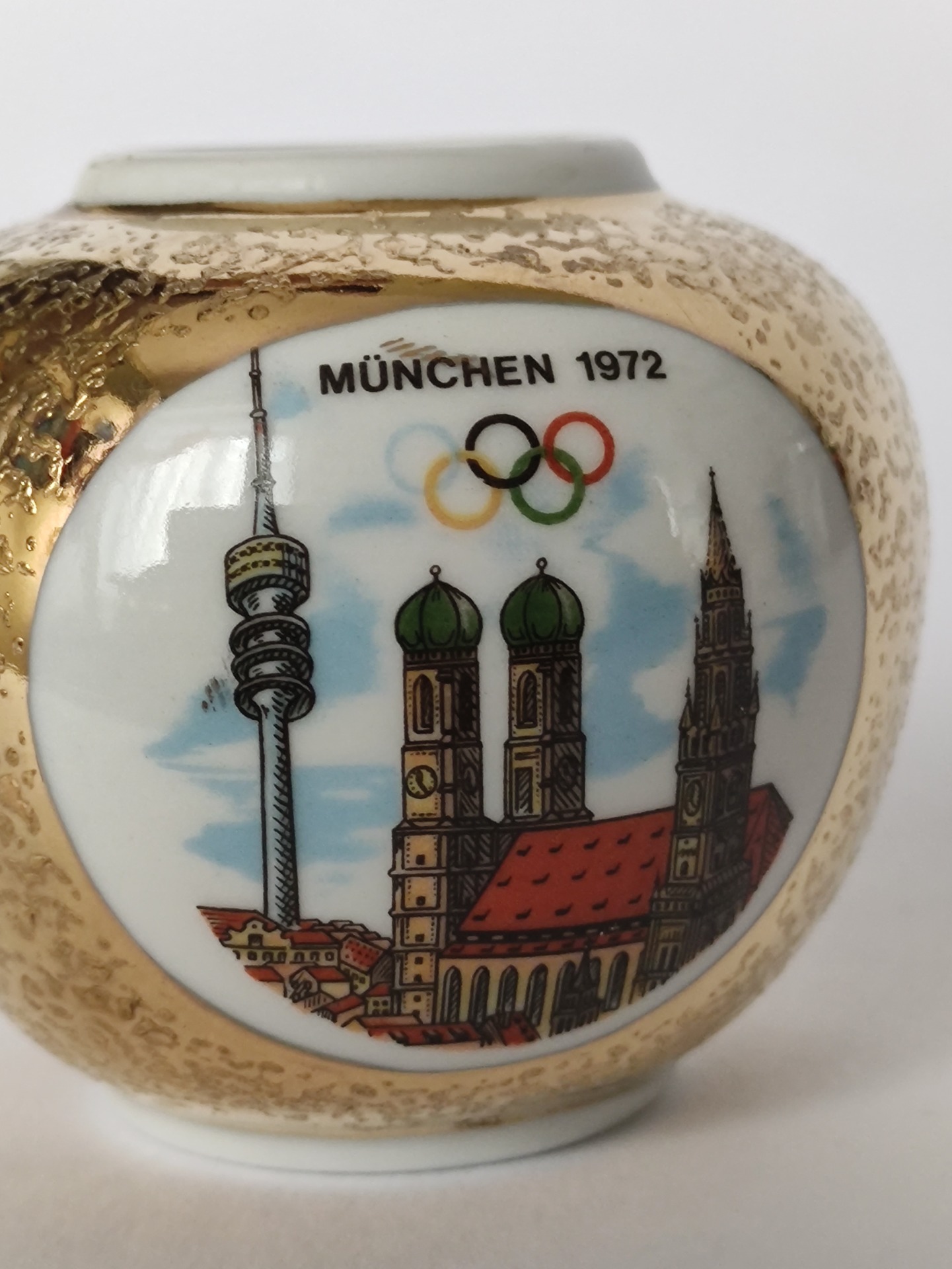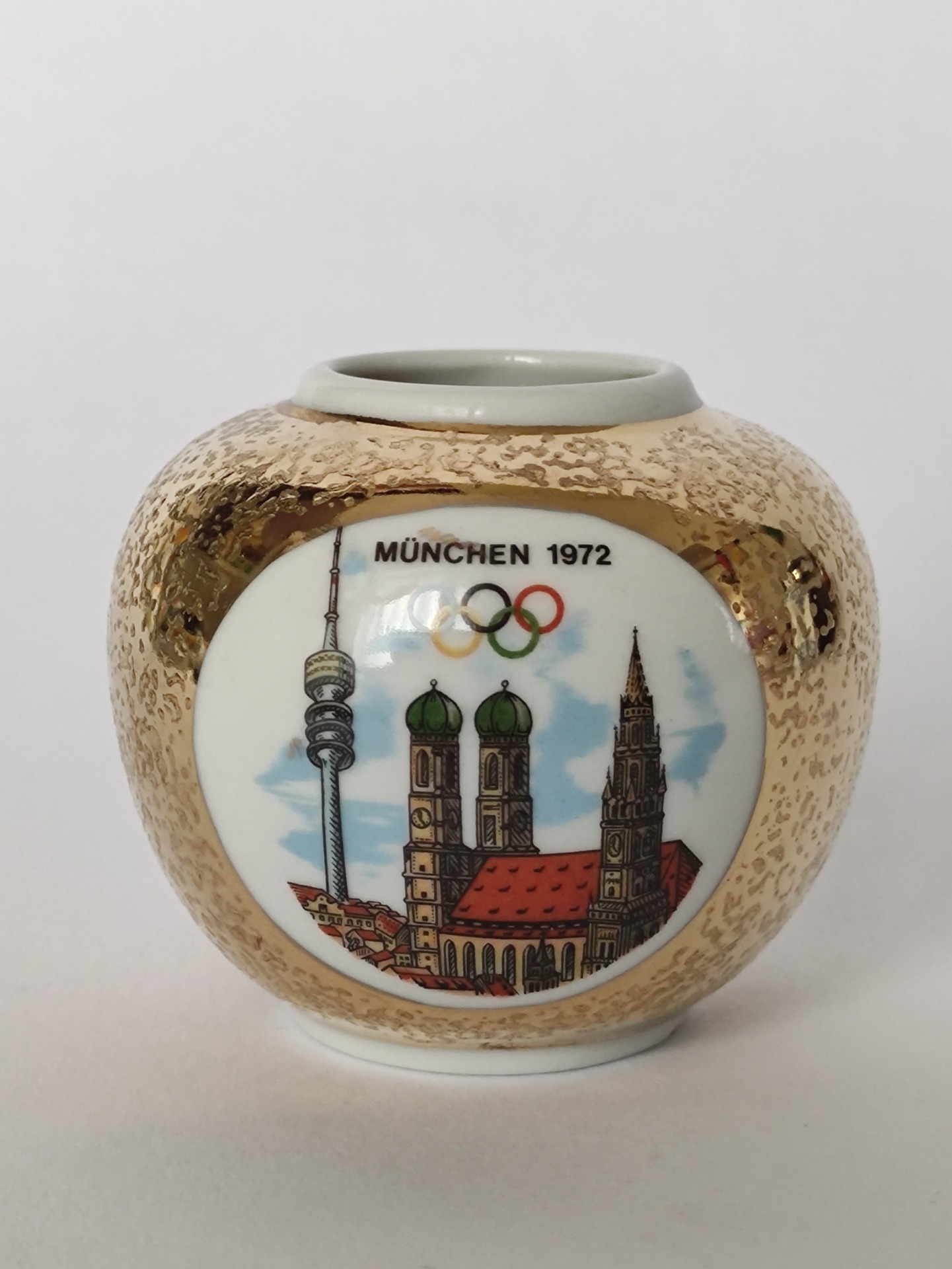 Retro porcelánová vázička připomínající olympijské hry v Mnichově v roce 1972.