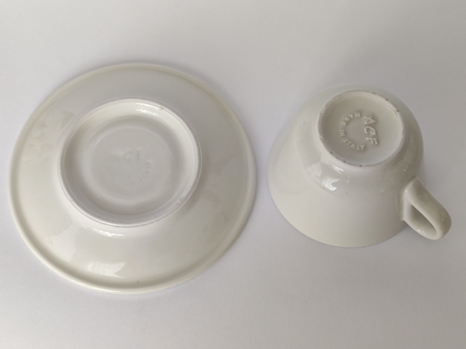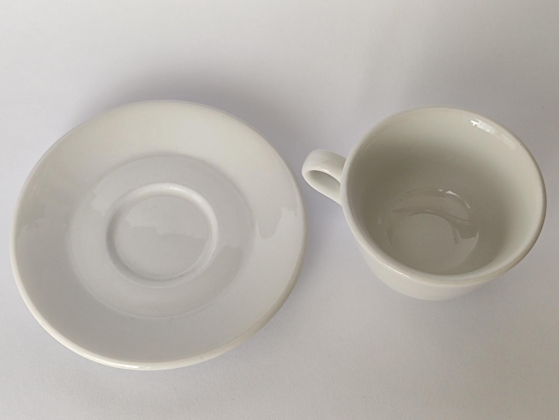 Šálek s podšálkem v pěkném zachovalém stavu. Pozor! Podšálek, co vám připomene, že nedokonalost je krása.