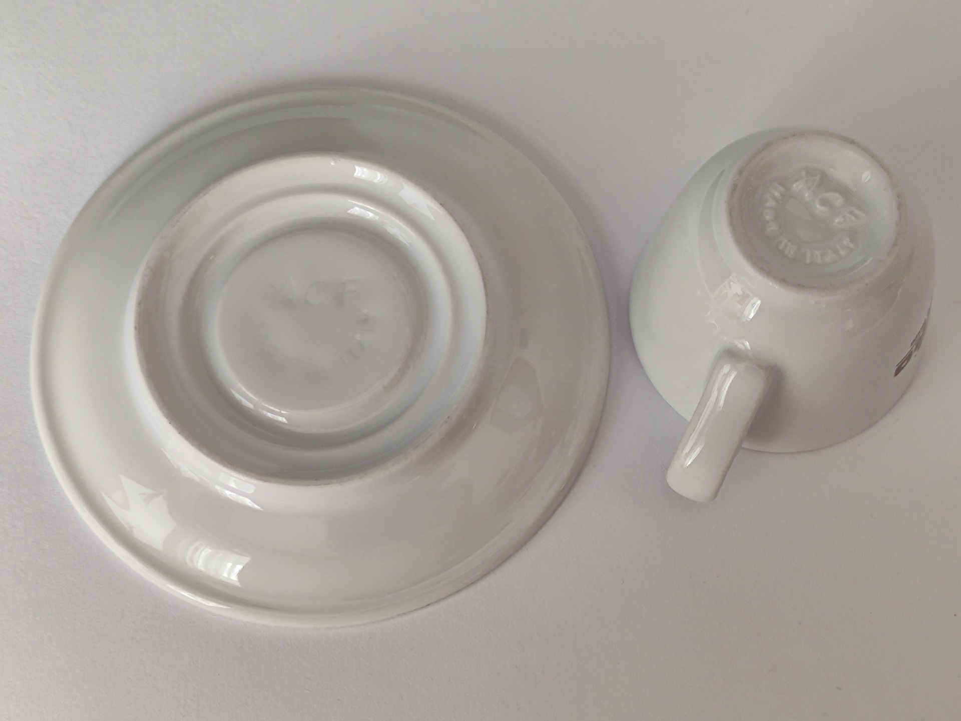 Šálek s podšálkem v zachovalém stavu. Pozor – známky stáří na hraně podšálku viz detailní foto.