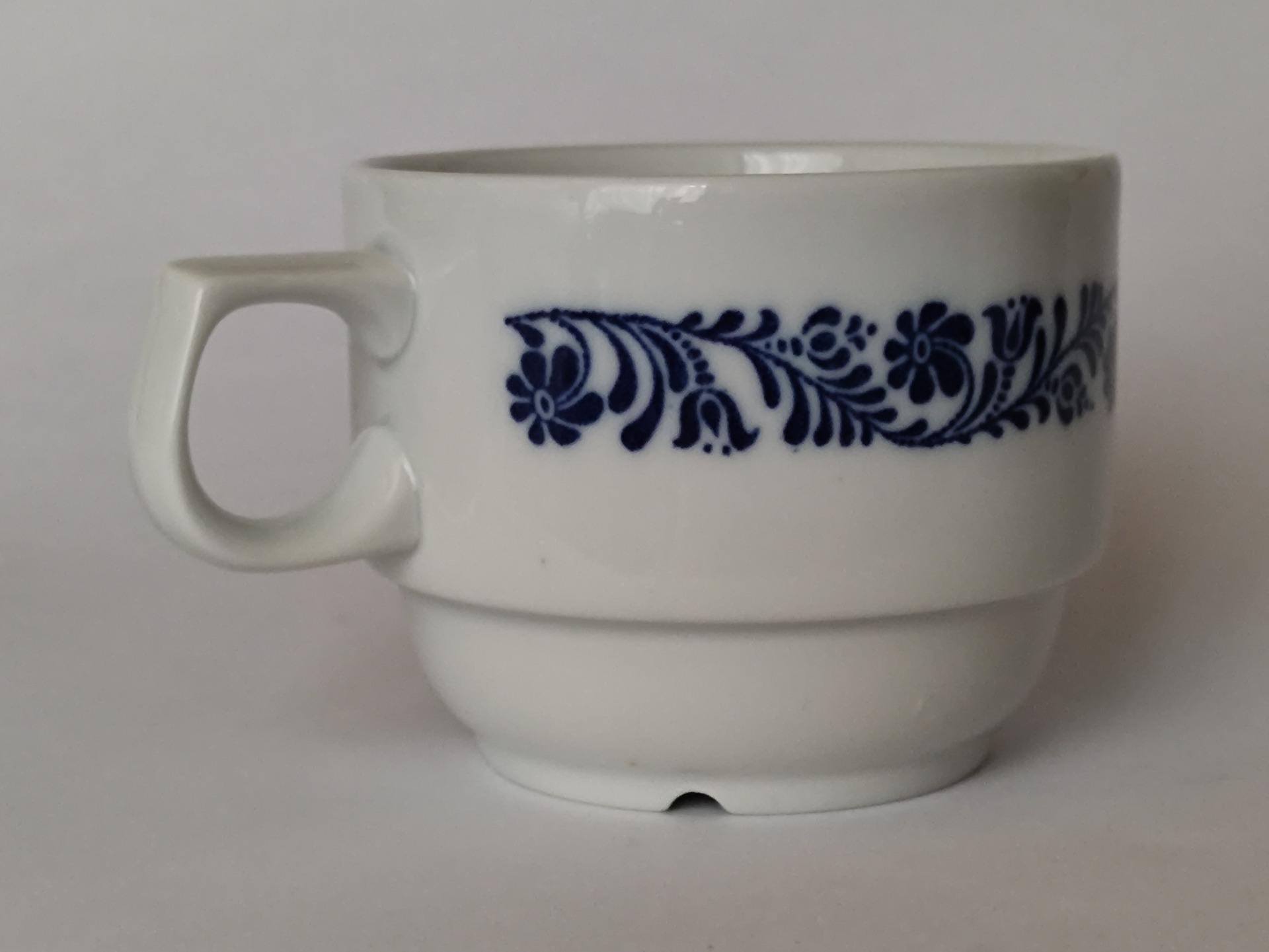 Šálek s modrým proužkem s květinovým motivem, bohužel bez podšálku. V bezvadném stavu.