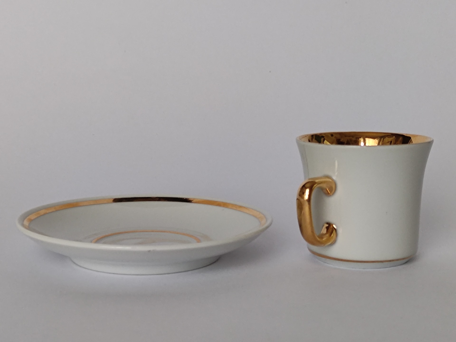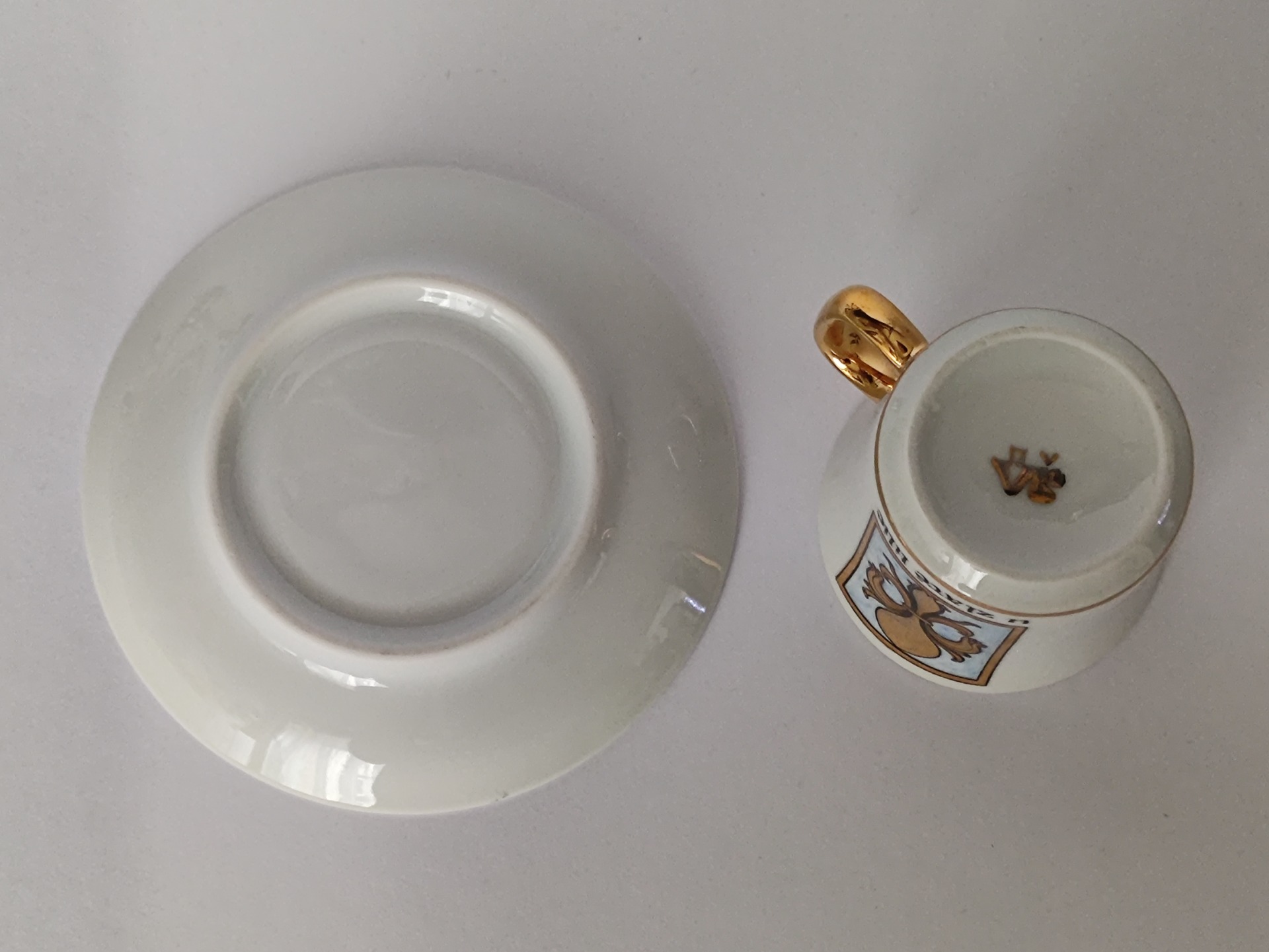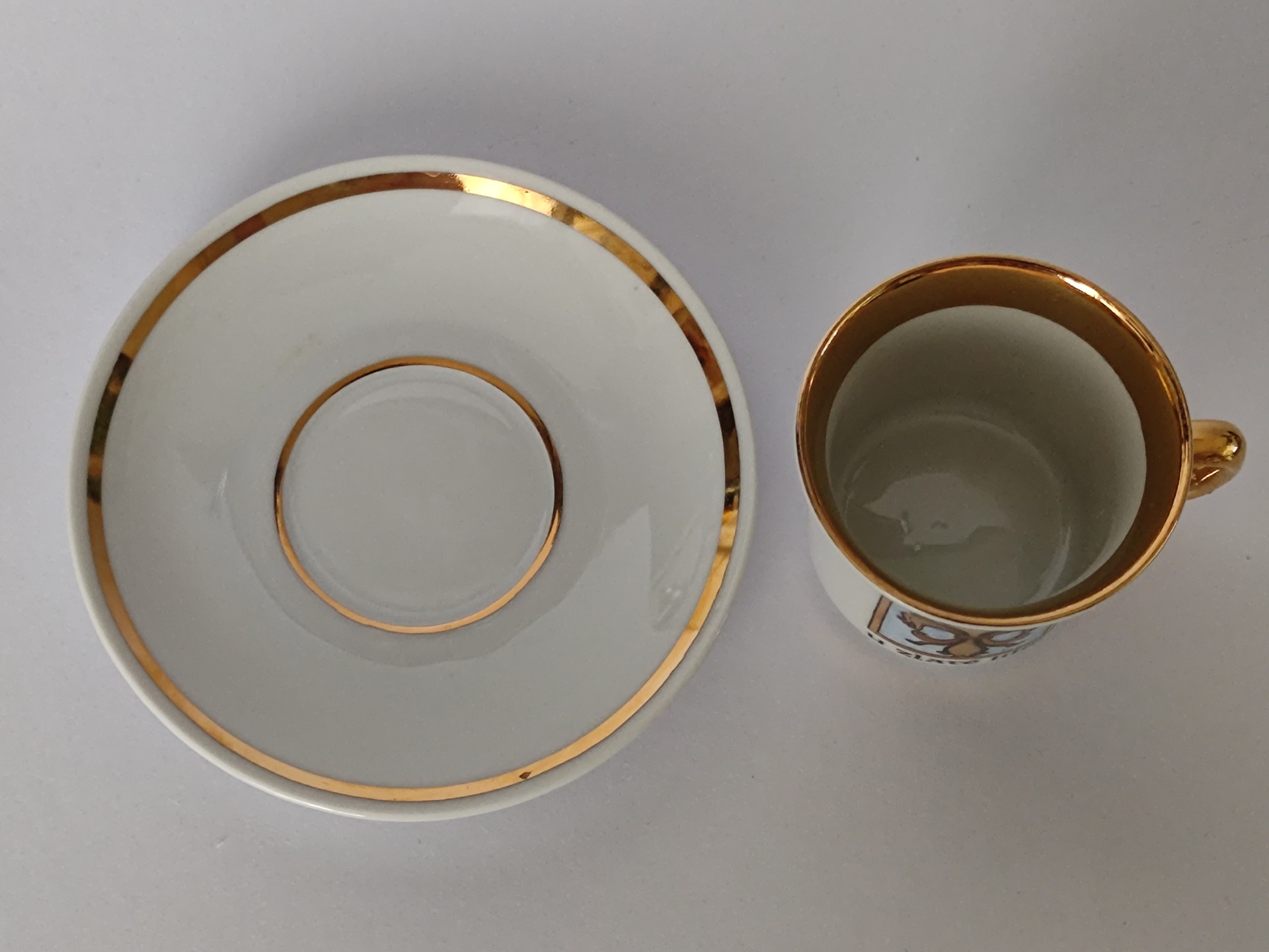 Šálek s podšálkem v pěkném zachovalém stavu, jen běžné známky stáří.