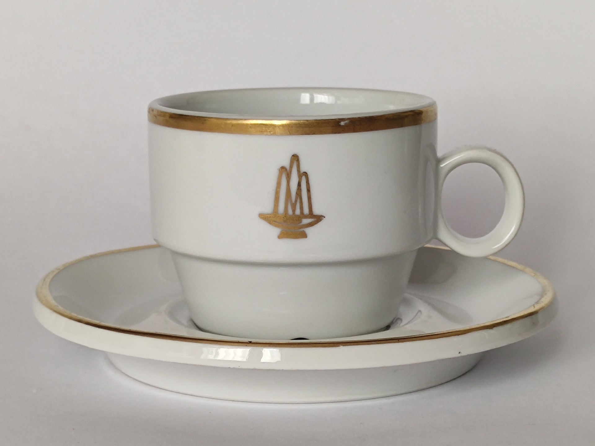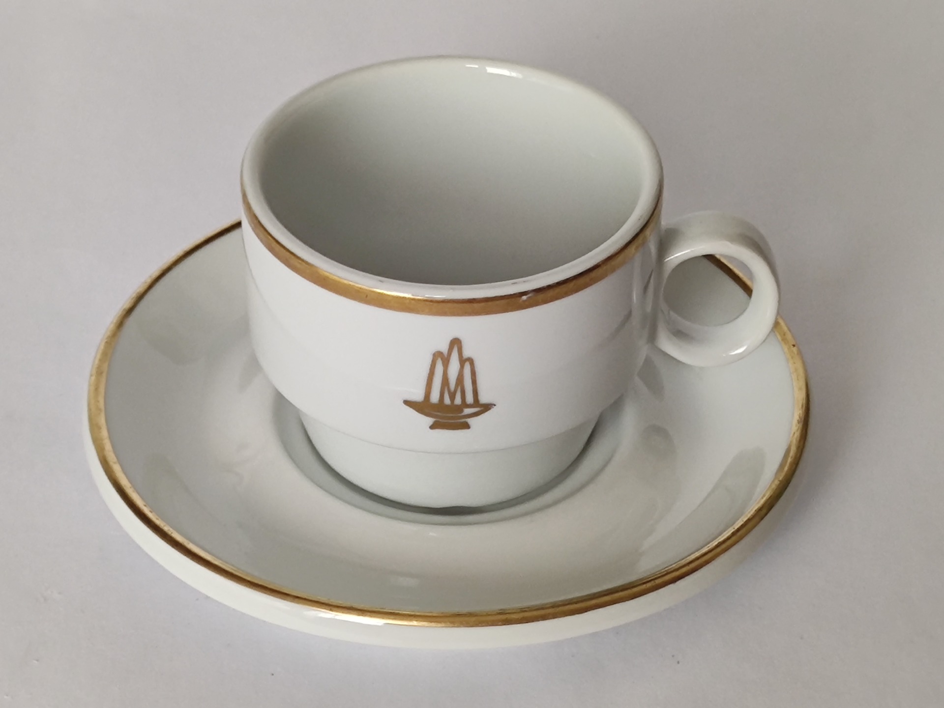Šálek s podšálkem, který spolu tvoří krásně sladěný pár. Samotný šálek nese typické logo, zatímco podšálek je bez loga, designově k němu ale přirozeně ladí.