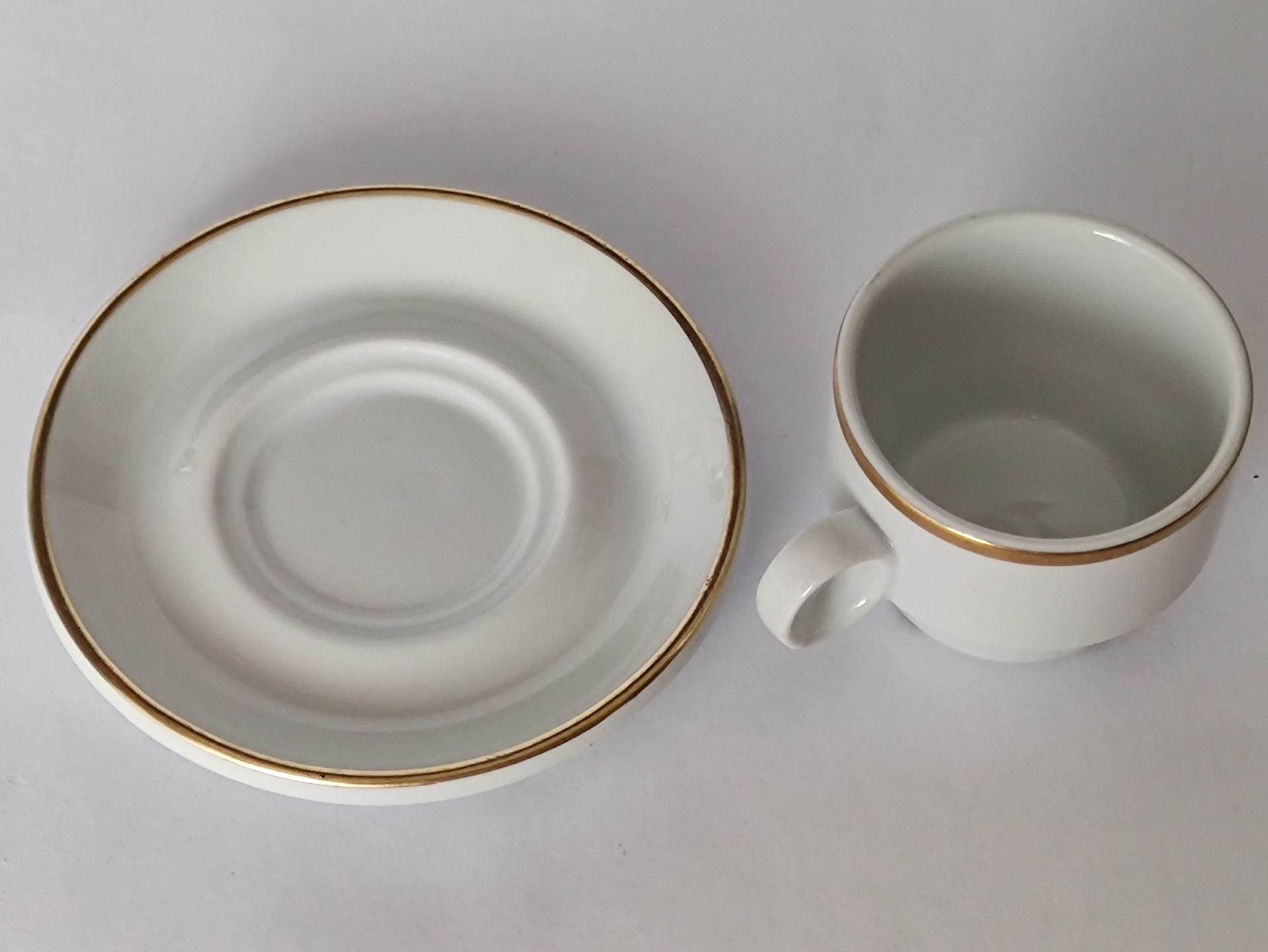 Šálek i podšálek jsou ve velmi zachovalém stavu, bez poškození. Zlacení i povrch nesou jemné známky stáří odpovídající stáří.