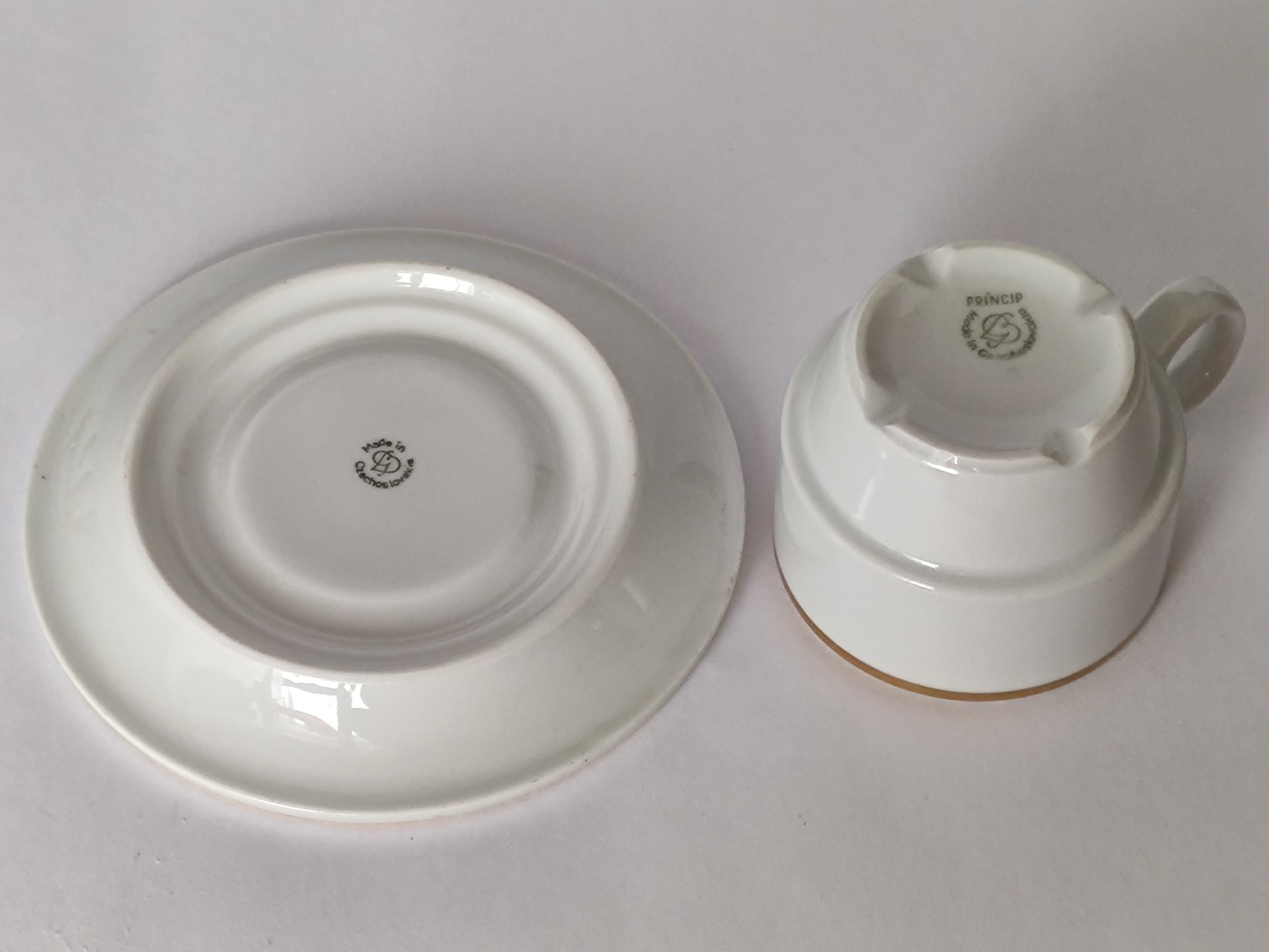 Oba kusy pochází z porcelánky Dvory. Dle značení se nejedná o původní set, přesto působí jako harmonická dvojice.
