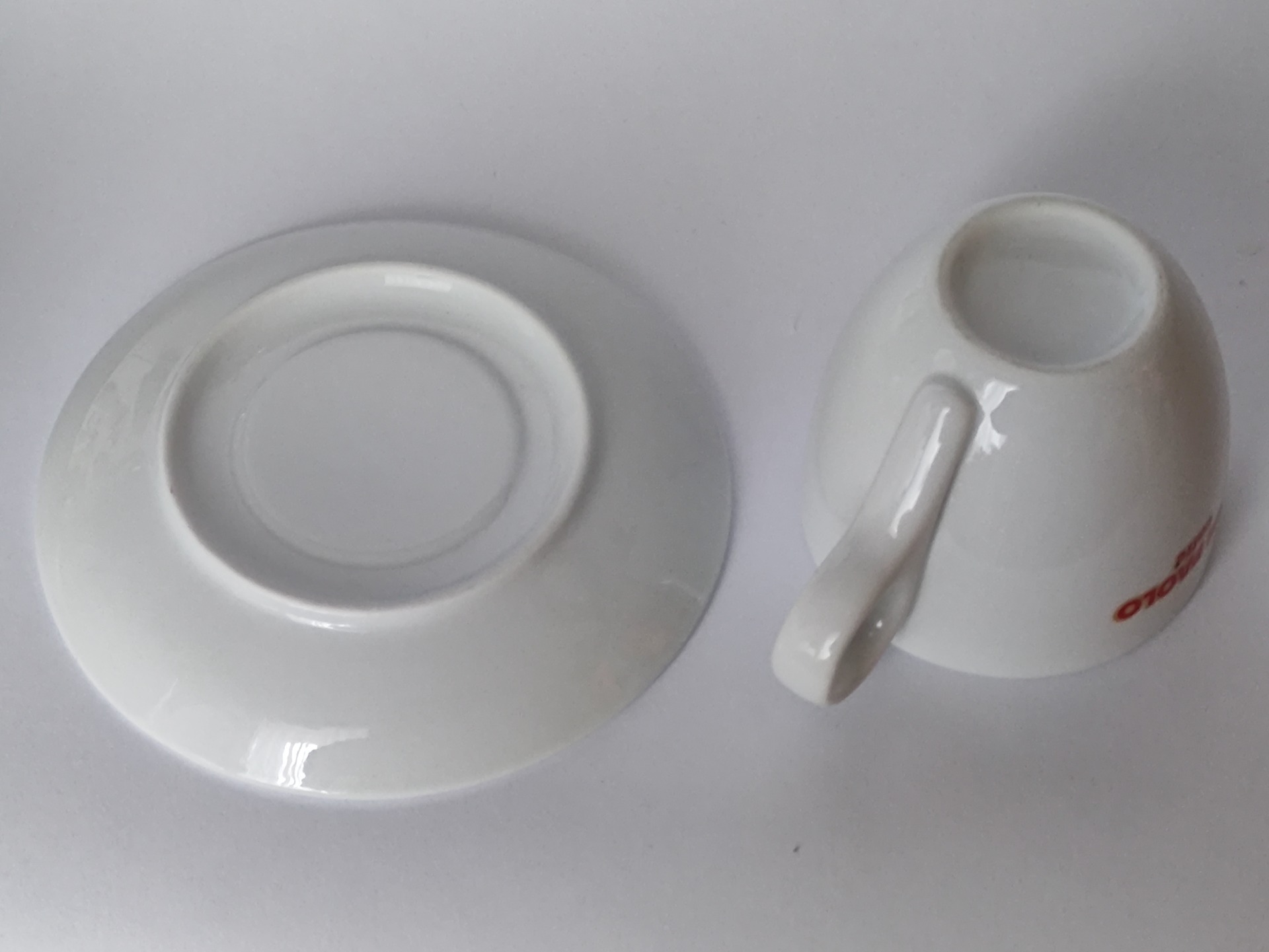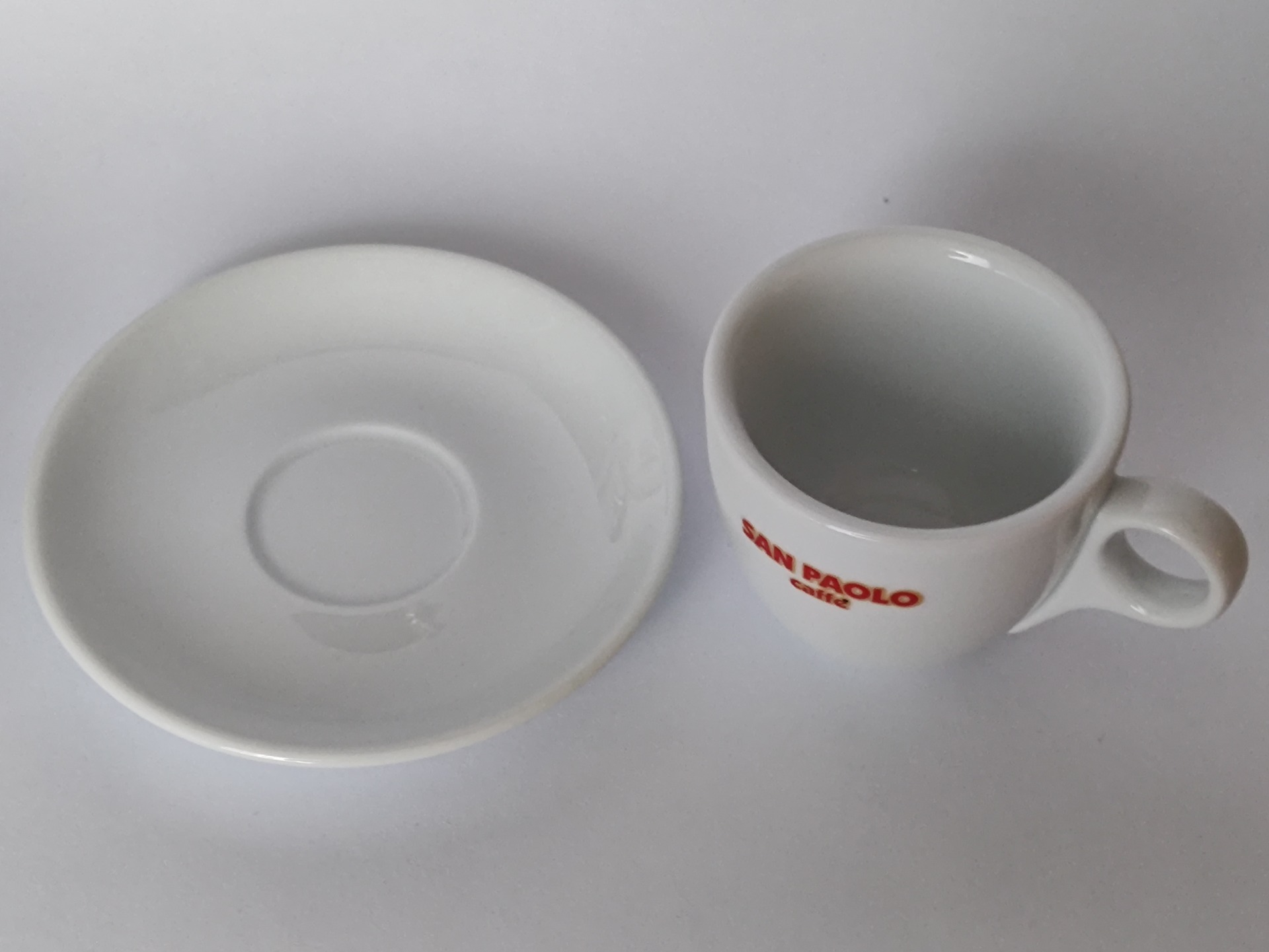 Porcelánové šálky Caffé San Paolo s logem. Stylový kavárenský šálek s podšálkem pro milovníky italské kávy. K dispozici více kusů, všechny ve velice pěkném zachovalém stavu.