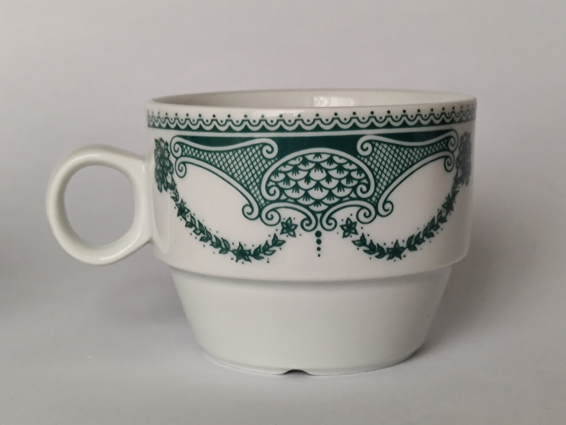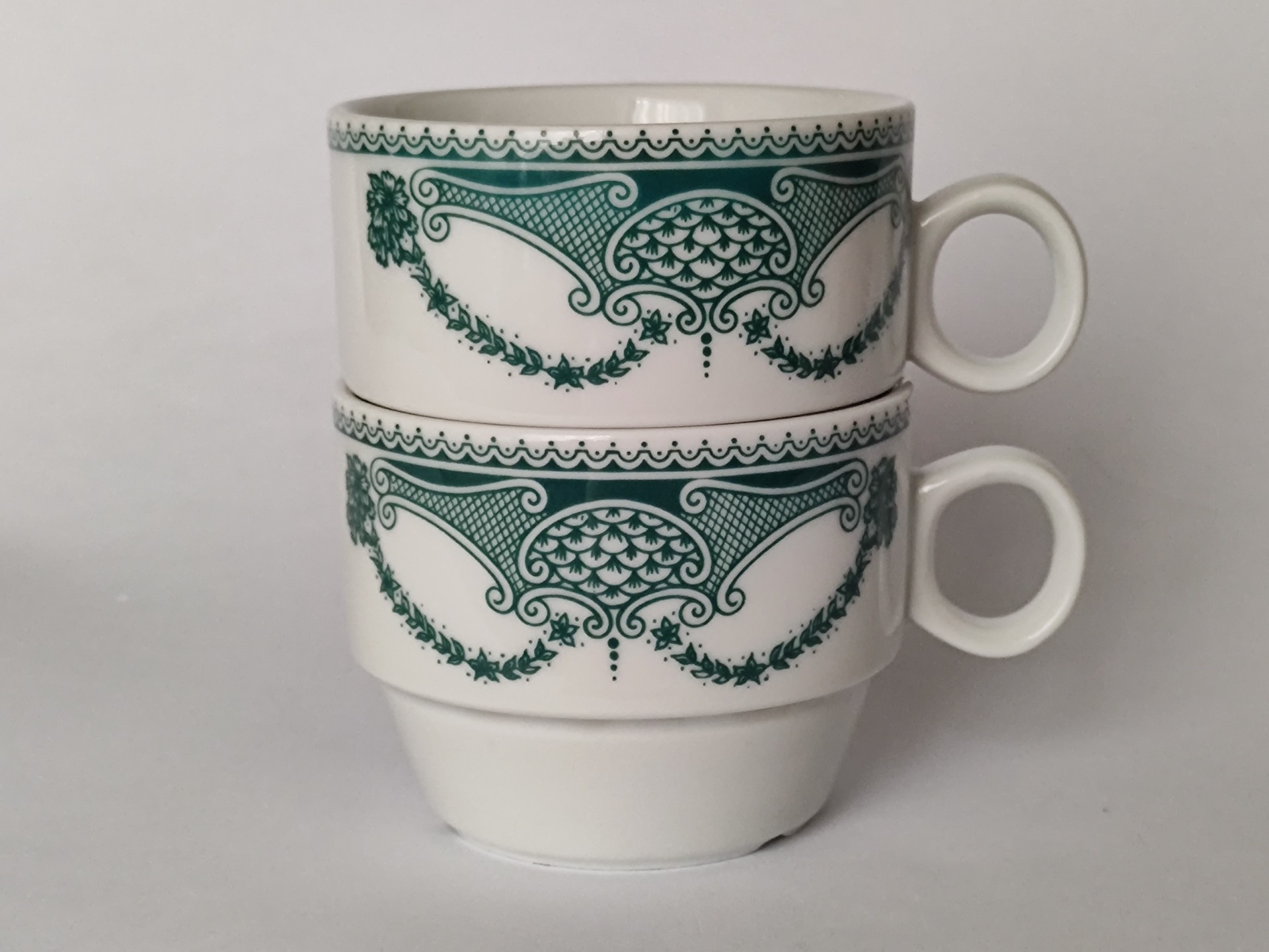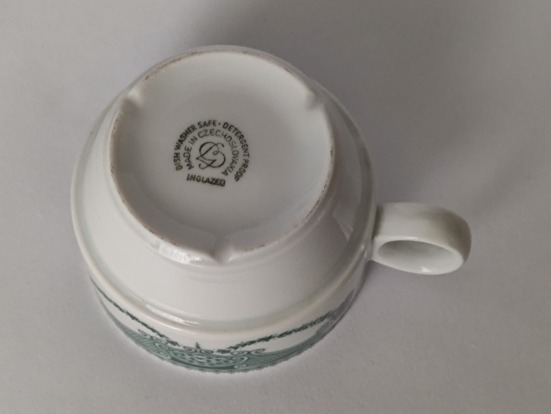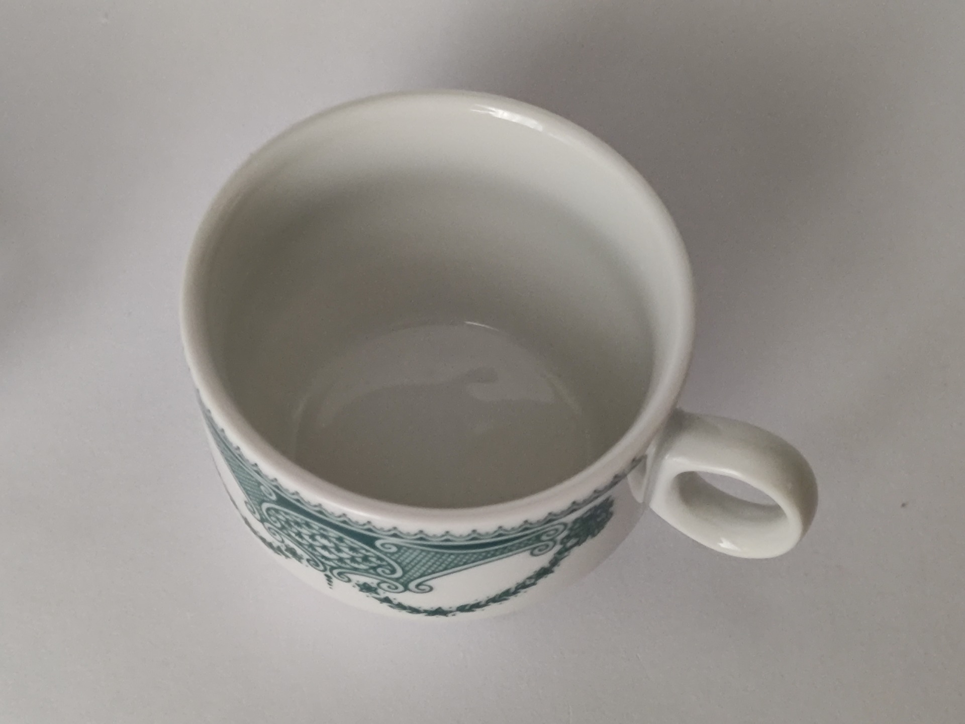 Šálky v pěkném zachovalém stavu, bohužel bez podšálku. Na jednom je potisk posunutý, viz poslední foto. Přednostně posíláme ten se správně provedeným dekorem.
