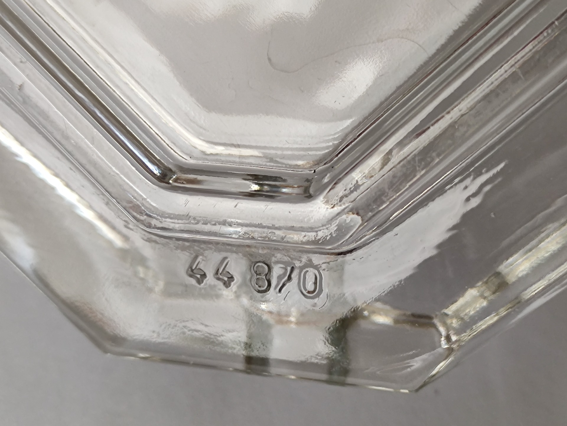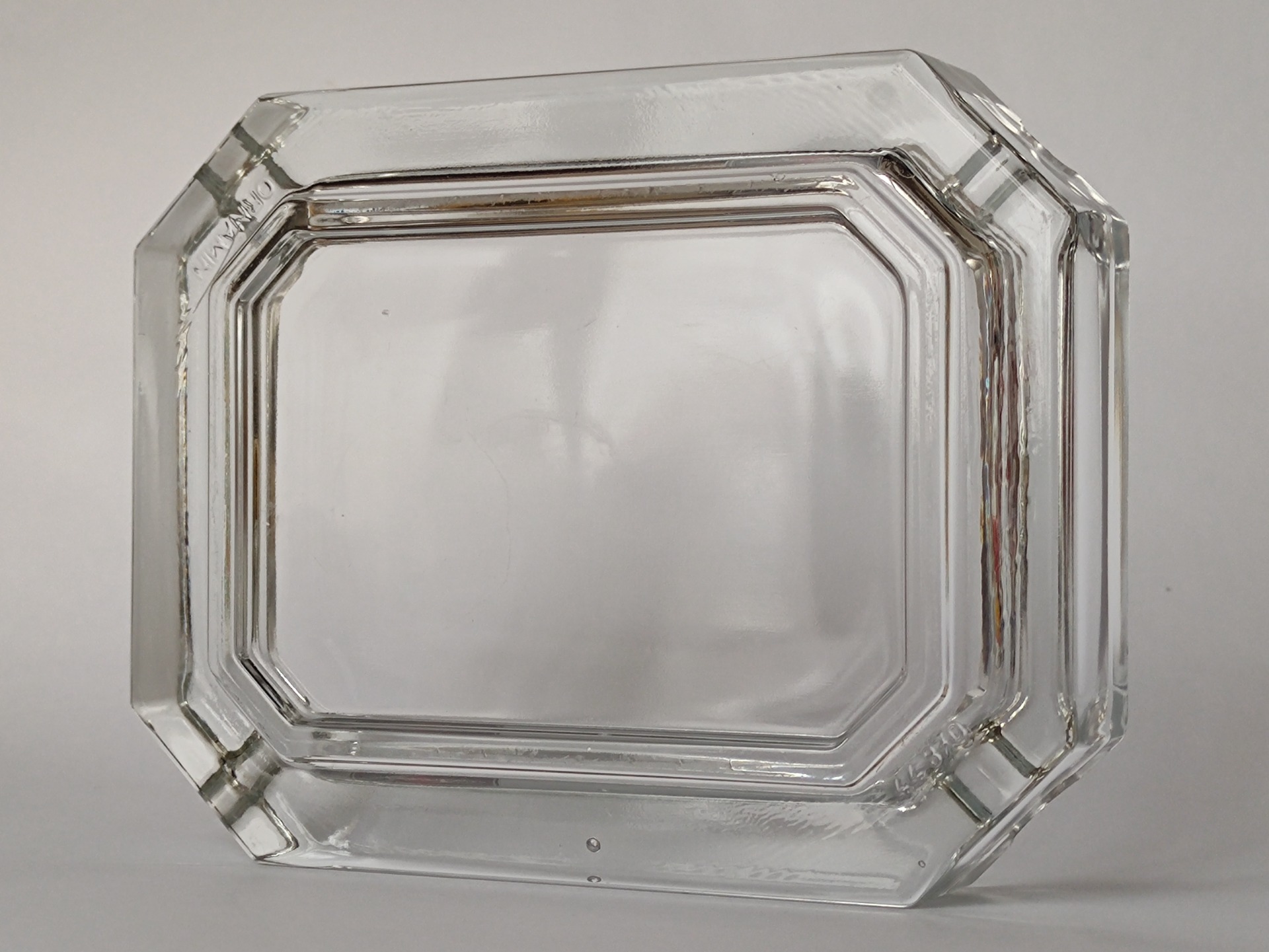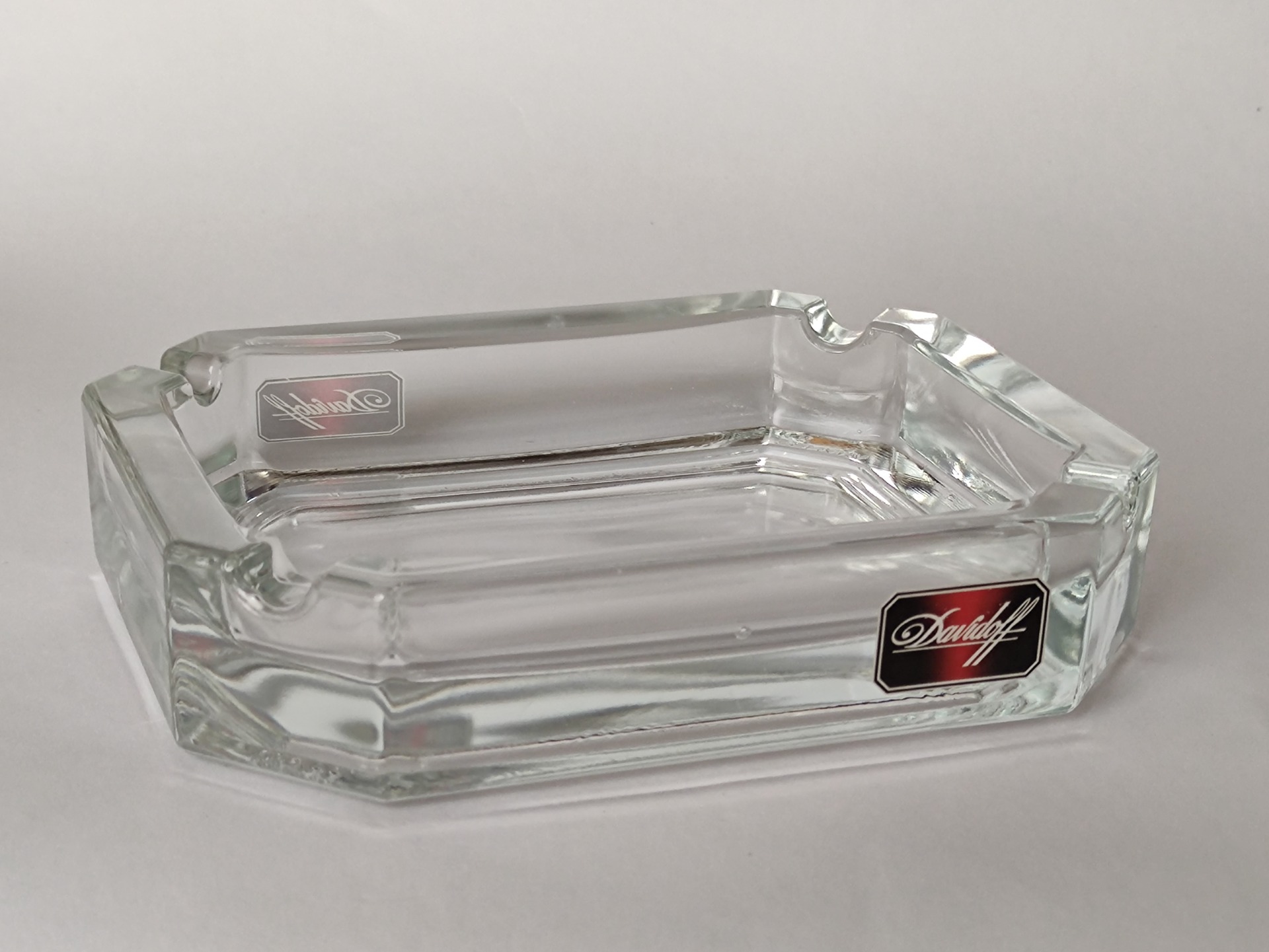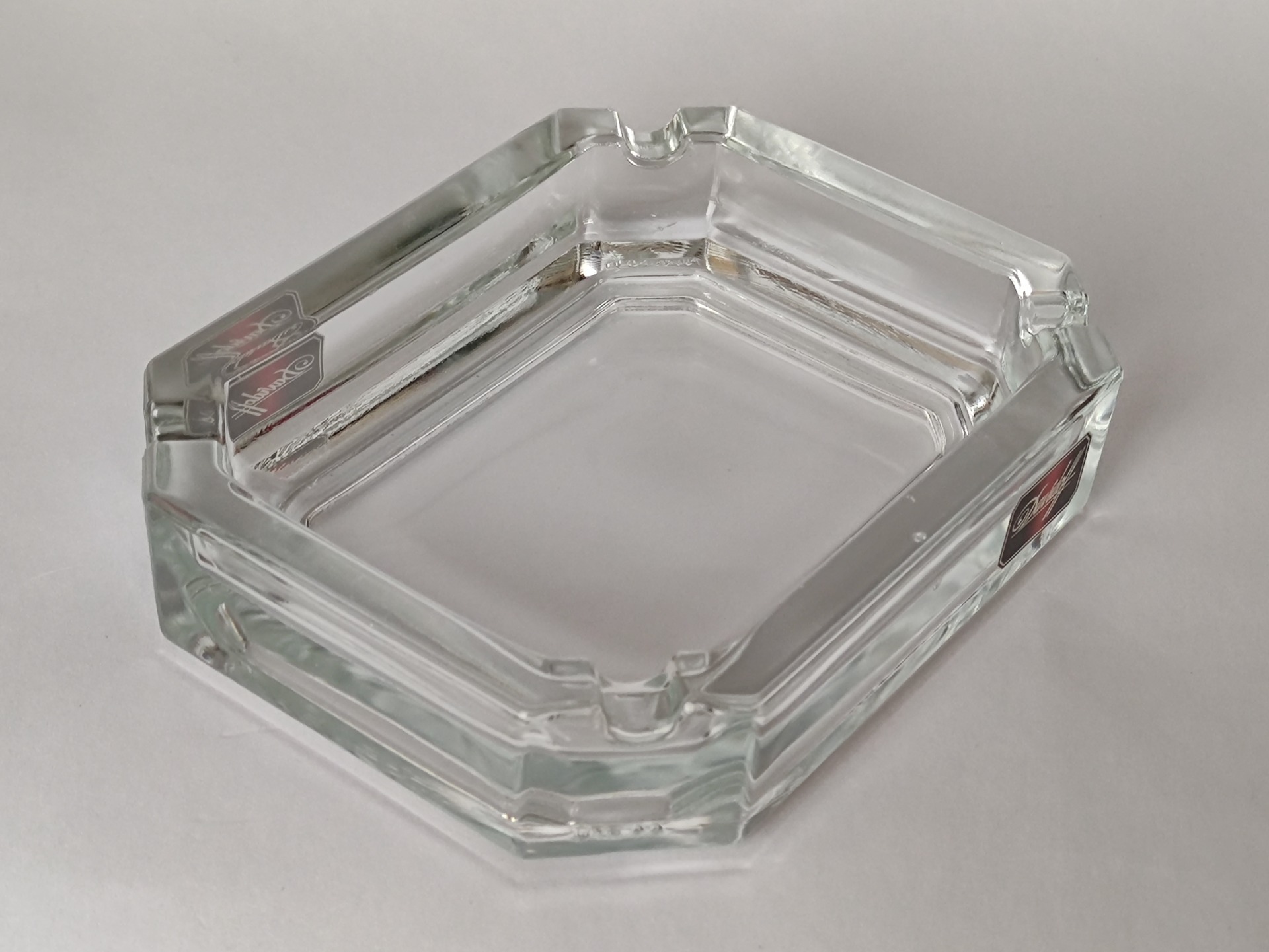 Stabilní popelník z čirého skla ve velice pěkném zachovalém stavu, jen malé známky stáří.